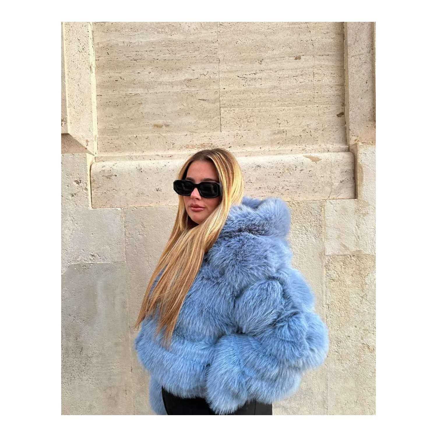 Eco pelliccia azzurra con cappuccio, dal design morbido e voluminoso, perfetta per aggiungere un tocco di eleganza ai tuoi outfit invernali. Comoda e calda, ideale per chi cerca stile e comfort in ogni occasione.